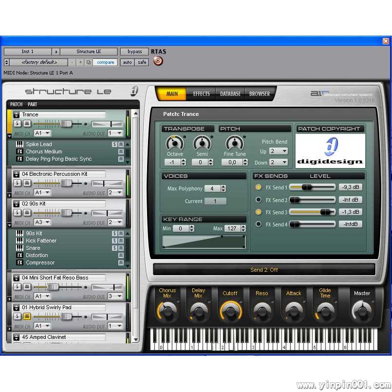 在每打开一个Structure插件时,先进的声音引擎均可支持多达8个通道的多音色回放和256音符复音