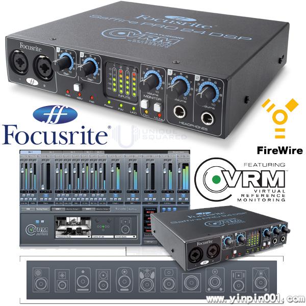 16进8出火线音频接口,带有实时DSP效果器包括压缩、EQ、混响,以及VRM虚拟参考监听技术,使你可以用耳机听到不同声场、不同音箱、不同位置的声音效果。