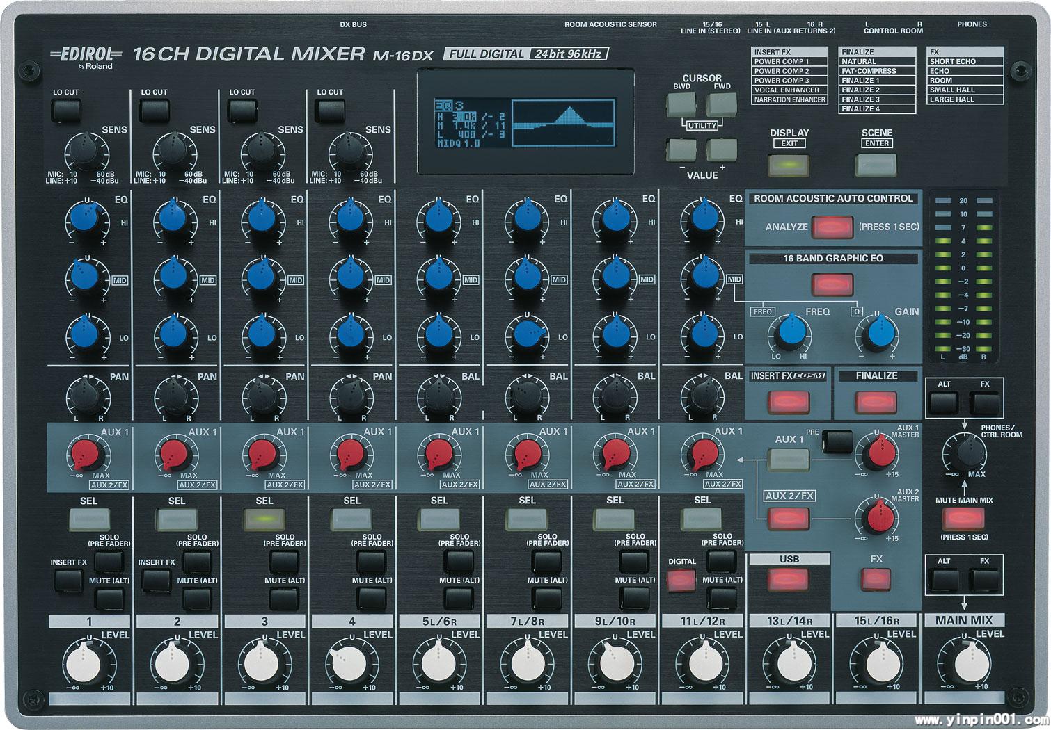 您想提高调音台的品质?那么M-16DX有着强大的24bit/96kHz的处理核心,可以创造出完美清晰的混音解决方案,而且具有您完全可以接受的价格。