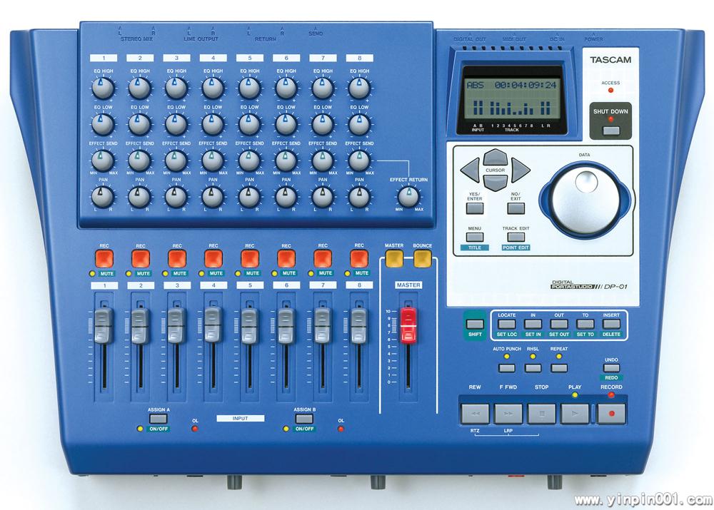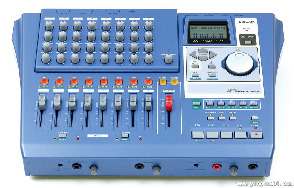 具体功能包括:2路话筒/线路输入,分别是XLR和TRS接口;8轨非压缩的CD音质录音;内建40GB硬盘;设有立体声主音轨用于录制缩混;各轨提供了45mm的音量推子及声相和效果发送、high EQ、low EQ等旋钮;板载了一对综合效果器模块和一个总体混响器;一台LCD显示屏指示音轨电平、编辑设置和标记点位置。DP-01FX/CD另外提供了USB 2.0接口,可高速与电脑连接传输数据。音频输出口包括RCA线路输出、耳机输出及S/PDIF数字输出。