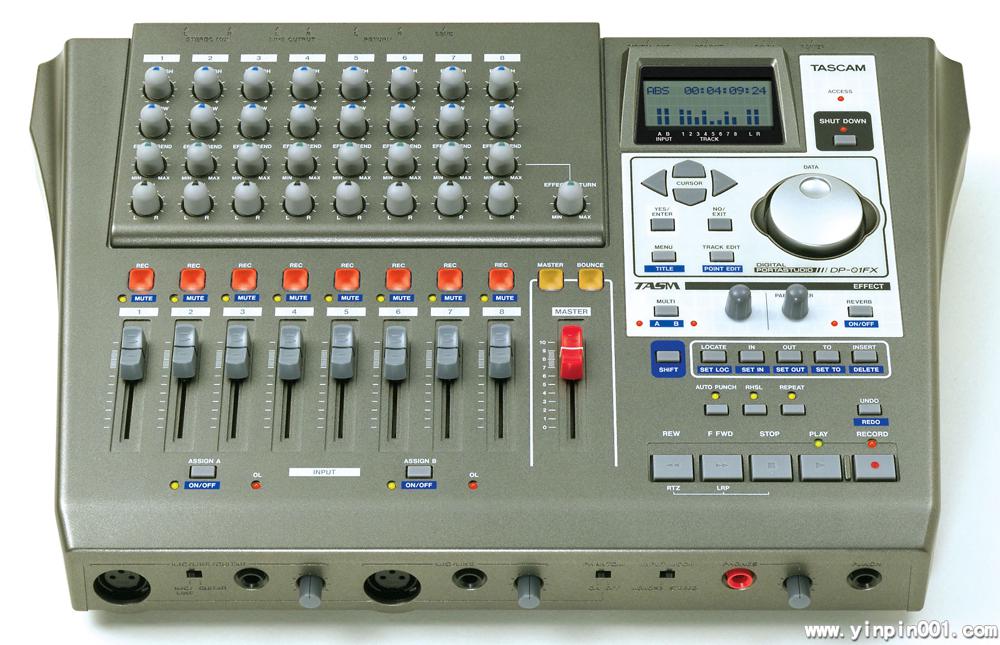 DP-01FX 体积较小,并且简单易用,适用于歌曲作家,学校等使用。具有内置效果处理器, EQ 通道, 8 个音轨,还具有可进行立体声或双单声道录音,带有幻相电源的 XLR 麦克风输入接口等特点。