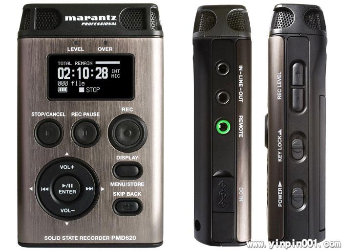 在专业录音领域,marantz推出了轻便的手持式数字固态录音机PMD620。体积小,重量轻,紧凑的外观,符合人体工程学的设计,所有这些都不妨碍PMD620在功能特性设计上的出色表现---2个高品质驻极体电容话筒和1个监听扬声器,使其适用于各种录音场合(采访,网播制作,会议记录甚至于现场音乐录音等)。