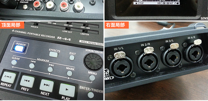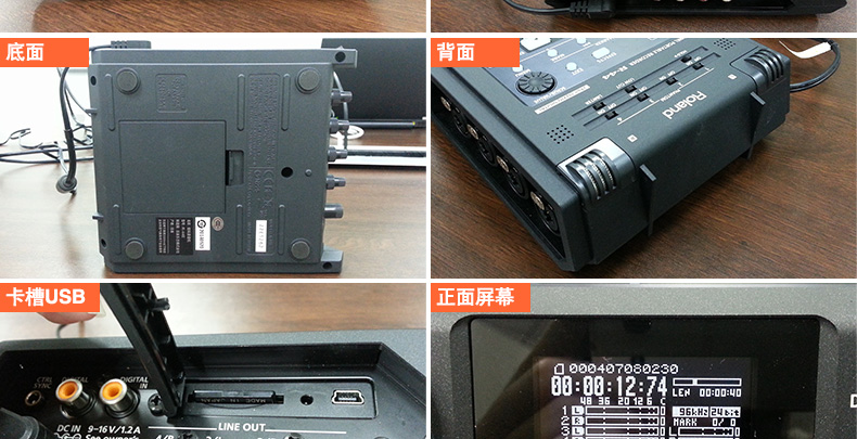 Roland的R-44 ,可以说是专为专业人士设计的,使用非常方便, 集合了4个通道的话筒输入接口;同时进行无压缩线性音频录音,可任意选择比特率(16位或24位)和采样频率(44.1khz/48khz/88.2khz/96khz);另外R-44使用SD卡或大容量卡,兼容SDHC卡作为记录媒体。没有任何运动部件,使大多数保持沉默,运行可靠,连接电脑后可以直接对音频编辑,非常稳定。