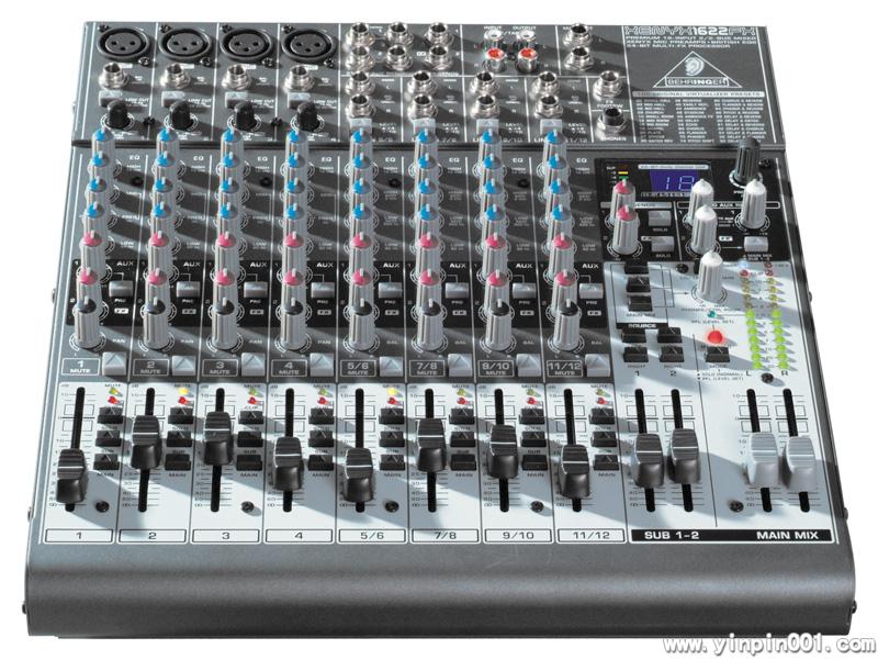 优质 16 声道,2/2 母线调音台,配有 XENYX 麦克风前置功放,英国式均衡器,24 比特多重效果器 模拟调音台,优质超低噪音线路设计,动态余量大