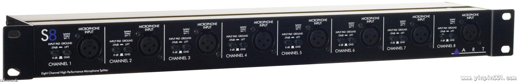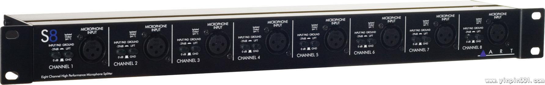 ART S8可以用来分割为16个平衡式低阻抗话筒信号(八对)八平衡式低阻抗话筒信号。