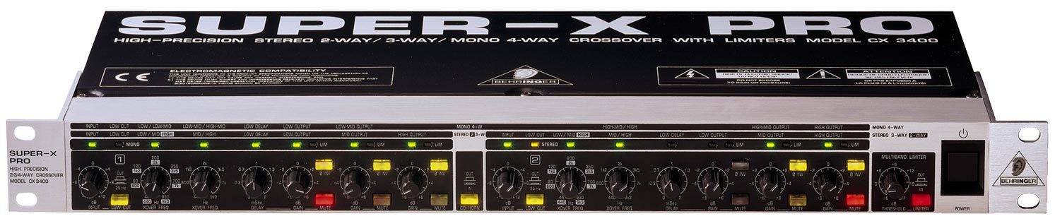 该CX3400 3路stereo/4-way单频采用绝对精密,先进设备,最先进的电路具有超强级组件,超低噪声运算放大器,平衡投入和产出。 该CX3400还包括一个可切换的预均衡电路,提供具有恒定指向角系统更高的性能。 用户可调的多波段限制器是包括个别扬声器系统组件的最终保障。