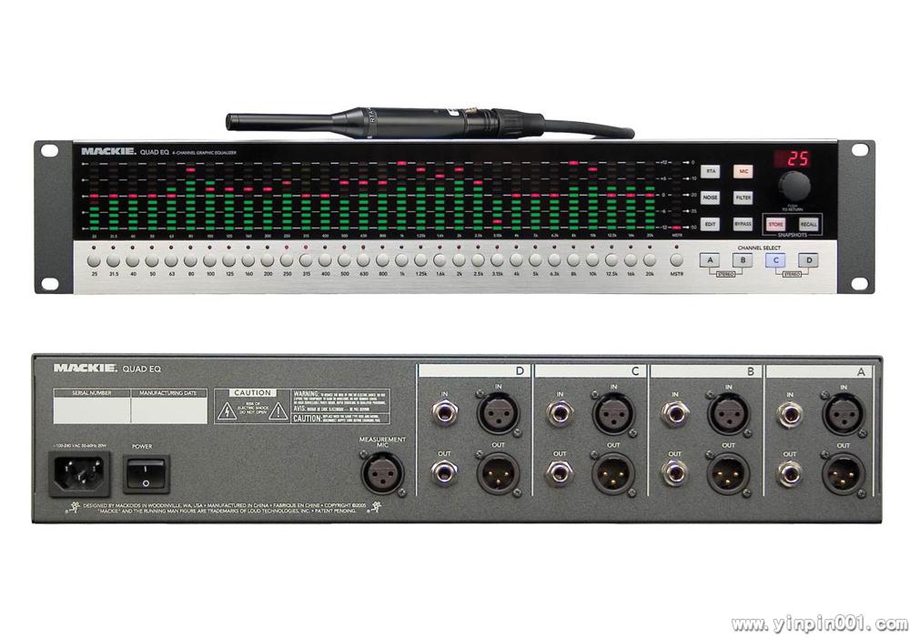 Quad EQ具有4个通道,30-段数字式均衡,现场扩声中3大最常用的工具—均衡、声压级电平表和实时分析仪 (RTA)—所有功能集中在一个机箱并同时显示。除此之外,Quad EQ还配有适配式-Q 滤波。24-bit 信号处理,99用户设定的实时场景,明快、简洁的面板。实乃为现场扩声的“指挥中心”。