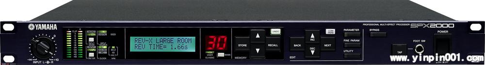 SPX90, SPX90II, SPX900, SPX1000 和 SPX990 这些型号的处理器是录音室的常见设备,其质量和性能得到了专业人士的肯定。新推出的 Yamaha SPX2000 数字处理器继承了其前代产品的优点,并增加和优化了许多程序。 Yamaha SPX2000 数字处理器能够在 24bit / 96kHz 状态下提供优越的声音品质。并重新优化了预置程序,包括新开发的 “ REV — X ” 混响算法。 SPX2000 数字处理器提供了友好的界面和菜单,并为方便区别效果模式而特别设计了 5 种颜色的背景光。其丰富的扩展输入与输出连接,可以提供优质的兼容性和控制性。 通过 SPx2000 编辑器软件,您可以在电脑上实现编辑和控制。