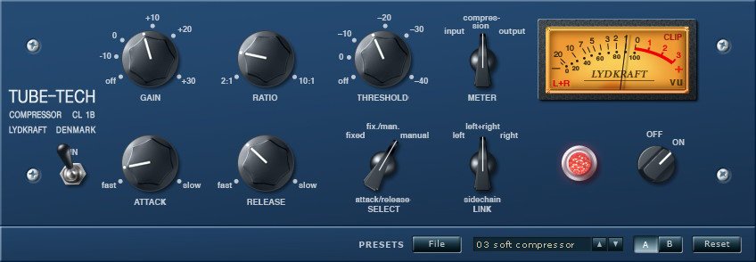 灵活的attack/release调节,使得你可以将Tube-Tech CL 1B用作插入或总线压缩器