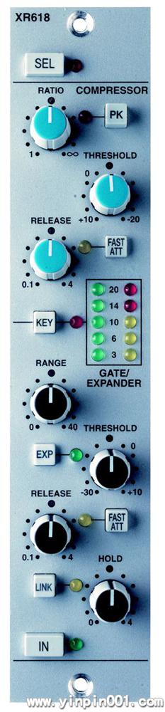 完全的平衡输入和输出 -10dB/+4dB切换压缩显示电平表 RMS压缩,可切换到硬拐点峰值感应门限和扩展器独立开关可以很容易的实现多模块相连接。