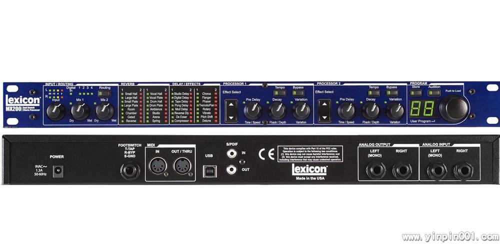 这款新的1U双通道设备将直观的前部面板设计和USB接口功能结合在一起,可以VST格式与软件录音平台结合使用。包括了大量混响算法、delays效果和 dbx的动态效果器,MX200适用于个人录音室和音乐厅录音。其提供了功能强大、操作方便的动态处理和效果器,保持了Lexicon的声音特色。 MX200提供了VST插件格式的操作平台,允许MX200作为硬件插件在VST工作站中使用,通过USB与电脑连接。USB的功能允许用户在电脑工作平台的图像界面中对效果器参数进行调节,并且具有完整的自动化和唤回功能。