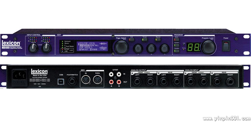 MX400的核心是让你从发明数字混响技术的公司期望获得的一切:17种莱斯康混响效果、延时和词制效果以及dbx的压缩和降低咝咝声等。丰富多彩的LCD显示和大而舒适的旋钮。