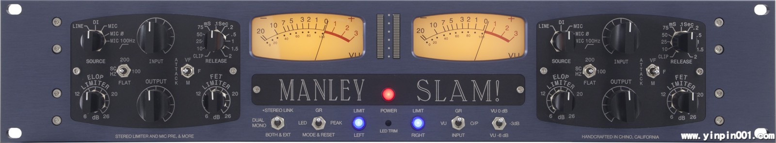 两通道真空管带压缩器的话筒放大器,SLAM!的意思是表示”立体声限幅器和话筒放大器”。