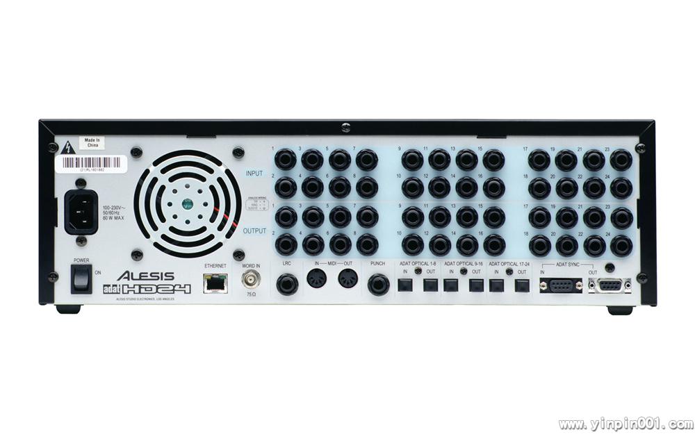 HD24能够在标准的采样率条件(44.1kHz, 48 kHz,以及88.2kHz)下实现24音轨的24bit高分解度录制功能。同时,设备的外部世界时钟输入可服从于外部时钟源,并且你还可以通过HD24的前置面板或者远程控制器实现音轨的剪切、复制、粘贴、插入、移动以及撤销等各种操作。介于目前市面上已经有众多物美价廉的计算机音频编辑产品,Alesis可以提供更多的音频输入、处理和图形编辑功能。HD24后部的以太网连接器能够以行业标准的AIFF格式实现设备和电脑之间的数据传输。此外HD24的24bitADAT光纤传输系统可以以ADAT光电信号实时地将24个音轨的信号传输至电脑声卡或者其他设备。用户可以通过LRC远程控制设备或者MIDI控件实现对HD24的控制,或者你也可以通过一个多功能远程控制设备实现对信号传输、音轨的调用、编辑等功能的控制。HD24还可以通过MIDI传输连接器支持MIDI命令和sys-ex批处理命令。通过扩展你的卡带音频设备你还可以使用HD24来扩展你的卡带音频设备,通过Alesis Sync In/Sync Out同步连接器,HD24能够以3个8声道ADAT的模式进行工作,只要有一套卡带音频设备连接到HD24之后,它便可以成为一台真正的高速卡带ADAT设备。